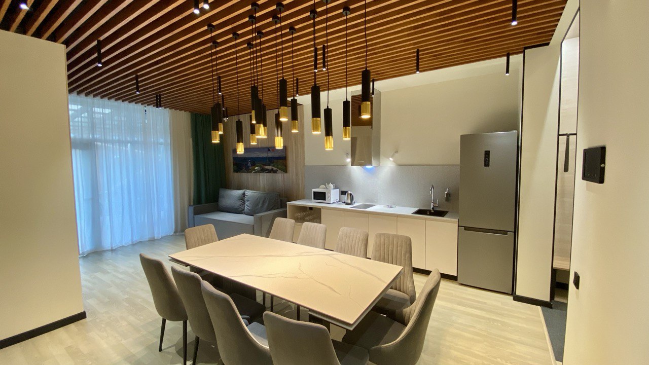 «Алиса, включи камин и закрой шторы» – уникальный комфорт гостям дарит подключение устройств в единую систему. Как по волшебству создается уютная атмосфера. Помимо голосового управления все функции доступны с планшета и дублируются в выключателях.